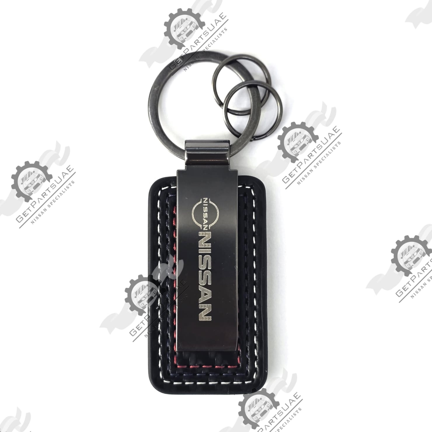 Nissan Leather Keychain- Black & Beige